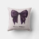 Infuse a sense of playful sophistication into a young girl's sanctuary with this delightful throw pillow. The design showcases a luxurious, realistic illustration of a vibrant purple bow, its folds and textures rendered with exquisite detail. This striking bow is presented on a backdrop of classic vertical stripes in gentle lavender and pristine white, offering a timeless and charming aesthetic. The personal touch of the name 'Shannon Wilkinson' elegantly scripted at the bottom makes this pillow a unique and heartfelt addition to any bedroom decor. Perfect for a bed, a window seat, or a comfortable armchair, this pillow blends style with a touch of personal warmth, creating a truly special atmosphere.