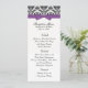An elegant and stylish wedding reception menu featuring classic damask and bow. Fully customisable. Contact us for personalised requests.