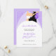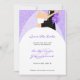 Trendy Save the Date cards with a bride and groom on a purple swirl background.