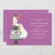 Fun and chic invitations feature a beautiful illustration of a happy bride sitting on top of a wedding cake. Perfect design for bridal showers, bachelorette parties, etc