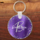 Purple Brushed Metal Silver Glitter Monogram Key Ring
