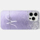 Purple Brushed Metal Silver Glitter Monogram Name Case-Mate iPhone Case