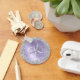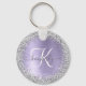 Easily personalize this trendy chic keychain design featuring pretty silver sparkling faux glitter on a purple brushed metallic background.