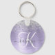 Easily personalise this trendy chic keychain design featuring pretty silver sparkling glitter on a purple brushed metallic background.