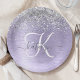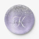 Purple Brushed Metal Silver Glitter Monogram Name Paper Plate