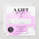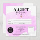 Modern abstract pastel purple pink watercolor brushstroke simple square gift certificate, add your logo, with a rose gold heart. Perfect birthday or Christmas gift certificate voucher.