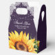 Put your bridal shower/wedding gifts into these romantic rustic purple floral favor boxes featuring a sunflower on a burgundy background adorned with white floral lace and string lights.