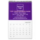 Purple colour business branding on customisable calendar. Customise it by uploading your business logo, typing your business name, address, phone number, e-mail and website. You can include it in your promotional products, giveaway items or gifts to your customers or clients, a marketing strategy to advertise your business or to promote your brand name. Customisable calendar that you can use to build brand name awareness and for noting reminders about appointments, meetings, schedules, events or occasions. Please check the appearance from the cover to the back page after uploading logo and typing texts. If the appearance is pleasing to you, you can place your order now. If you need to resize and reposition the logo and texts to fit in the templates or in the size and style that you will choose, please adjust in the design tool. You can also change the background colour, font colour and font style in the design tool.