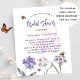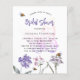 A white background. Decorated with bees and painted wildflowers in violet and pink and a large butterfly. Personalise and add a name and party details.