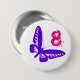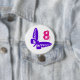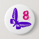 A button for an 8 year old with a purple butterfly and '8' in pink on their birthday.