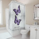 Add a unique touch to your bathroom with a Purple Butterfly Floral Shower Curtain. Shower Curtain design features a pair of vibrant butterflies resting on a white floral vine against a light grey grunge background. Additional gift items available with this design as well.