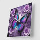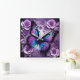 Purple Butterfly Floral Square Wall Clock