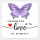 Purple Butterfly Handmade with Love White Square Sticker.