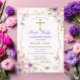 Purple Butterfly Pink Floral First Holy Communion Invitation
