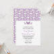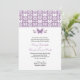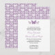 A pretty purple and white butterfly and floral damask pattern adds a touch of whimsy to these wedding invitations with a dark grey and purple font. Studios, LLC.