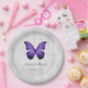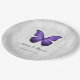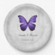 Elegant and simple Wedding paper plates featuring a Purple Butterfly against a grey grunge background. This design is a unique choice for a modern wedding. Easy to customise with your wedding details. Click "Customise It" to find more personalisation options.