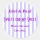 Purple Candy-stripe Sweets for my Sweet Sticker. Great for birthday parties, Weddings or other events with Candy buffets! Either stick to jars or paper bags. to make them extra special, stick to some precut cardstock and add a ribbon. Then simply hang around the jar! Or stick a coffee stirrer to the back of pre-cut cardstock, add the sticker and use as a cupcake topper!