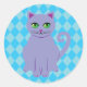 This elegant purple kitty cat illustration features a kitschy periwinkle feline with bright green eyes and a cute swirly tail! This cat artwork is the perfect gift to buy for a cat lover and anyone who loves beautiful original art!