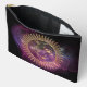 Stylish accessory pouch features Gold sun & moon overlay on purple celestial dark sky background