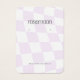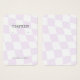 Earring display card featuring a cute lilac chequered pattern. Template holes can be adjusted or deleted, as well as all your company information. Add your social media or website to the bottom.