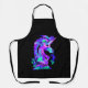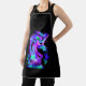 decorative artwork of a purple coloured chess figure called knight with a horn like a unicorn on an apron.
