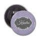 Open bottles with a Purple Chevron Personalised Bottle Opener. Bottle opener design features a purple chevron background and an ornate grey tag to personalise with your name and monogram. Additional items available with this design as well. Please contact me directly for assistance with personalisation.