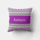 Eye-catching purple and grey chevron striped personalised gymnastics throw pillow. Add your own custom text before ordering!