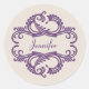 Elegant and sophisticated Chic Damask Stickers featuring a soft beige background and a stylish damask flourish embellishment in purple. This modern design is easy to customise with your own text. Click "Customise It" to find more personalisation options.