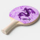 Custom ping pong paddle done in a lavender and purple Fleur background, with graphics of a purple Chinese style dragon, on both sides. Personalise the purple text to read what you want. Makes a great gift idea for her.