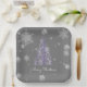 Elevate your holiday gatherings with this Purple Christmas Tree and Snowflakes Paper Plates, a stylish addition to your festive table. These sturdy plates feature a festive design with a radiant Christmas tree and white snowflakes, accented by fancy flourishes and falling snow against a sophisticated grey background. The elegant script displaying "Merry Christmas" adds a touch of holiday cheer. Perfect for serving treats, these plates combine functionality and charm to enhance your seasonal celebrations with a refined, wintry vibe.