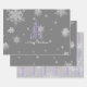 Add a touch of timeless charm to your holiday presents with these Purple Christmas Tree and Snowflakes Wrapping Paper Sheets. Designed with a festive Christmas tree accented by elegant flourishes, delicate white snowflakes, and gentle falling snow, this design captures the magic of the season. The grey background creates a sophisticated contrast, while the Merry Christmas message in elegant script ties the look together beautifully. Perfect for any winter theme, this versatile holiday gifting supply makes every present feel extra special.