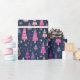 Adorning the wrapping paper are super cute Christmas trees in delightful shades of pink, purple, and white. These charming trees bring a playful and whimsical vibe to your gifts, adding a pop of colour against the deep blue backdrop. The combination of pink, purple, and white hues creates a harmonious and eye-catching colour palette, evoking the enchantment of a winter wonderland.