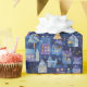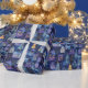 A beautiful blue and purple Christmas village scene is depicted in this image. The village is covered in snow, with charming houses and Christmas trees scattered throughout. The intricate pattern of the village creates a cosy and festive atmosphere, perfect for the holiday season. The colour palette consists of shades of blue, grey, and white, enhancing the wintry feel of the scene. This picturesque winter night fabric by the yard captures the essence of a peaceful and magical winter evening, making it a perfect choice for holiday-themed projects or decorations.