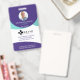 Professional and modern vertical photo identification badge. Customize with your photo, name, title, ID number, location name, logo. The circular purple and aqua design can be changed to any color, simply click personalize and click to customize further. The reverse side features a purple background, which can also be changed to any color.