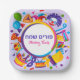 Purple Clown Hamantash Jewish Hebrew Happy Purim Paper Plates