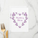 Wedding menu butterfly heart design. Customise this purple coloured menu with your wedding details. Should you require any help with customising then contact us through the link on this page. Purple coloured butterfly heart design personalised wedding menu
