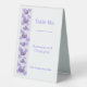 Wedding table number floral heart design. Customise this purple coloured table number with your wedding details. Should you require any help with customising then contact us through the link on this page. Floral heart design purple coloured personalised wedding table number