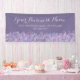 Welcome banner for a business/company in purple with confetti in violet, pink, and blue.