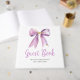Pretty bridal shower guest book featuring a purple coquette bow ribbon. The words can be changed to suit your own details or requirements
