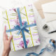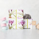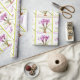 Crocus watercolor pattern art wrapping gift paper. Fine art crocus painting wrapping gift paper in white, purple and green. Great for Easter gifts or spring birthdays. Customise with your own words and names. Uniquely painted in watercolor by Sarah Trett.