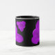 This fabulous floral mug features a photo of a crocus flower that has been digitally altered by adding a filter to turn the flower purple. There are two of these flowers, one upside down and the other the right way up. The flowers are on a black background. The design is on both sides of the mug. It is shown here on a black ringer mug but is also available on other styles and colours of mugs, including travel mugs and frosted glass mugs.