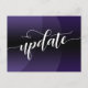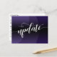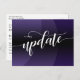 The background has been covered in a trio of purple curves with a subtle black ombre overlay. Using a pretty script font with swirls and waves, I created a graphic that reads "update". The reverse side includes template placeholders for your details with matching accents featuring the calligraphy font. Use these template fields to add your personal details and change my draught wording to suit your needs and situation. Other pieces are available in the set and I'm happy to create additional variations upon request. // 99 //