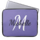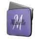 Laptop case with a purple background and white custom monogram first initial and first name.