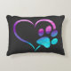 Purple Cyan Dog paw Print Heart Decorative Cushion