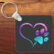Purple Cyan Dog paw Print Heart Key Ring