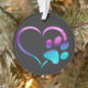 Purple Cyan Dog paw Print Heart Ornament