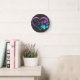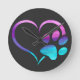 Purple Cyan Dog paw Print Heart Round Clock