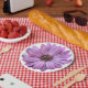 Stunning purple daisy on white paper plates - CHANGE TO ANY BACKGROUND COLOR - are perfect for any occasion. First Communion, Dedication, Baptism, Christening, Bridal Shower, Birthday Party, Summer Party and more. 2 SIZES available.