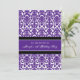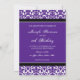 Custom 18th Birthday party invitations in elegant dark plum purple, black and white classic floral damask pattern. Add your name and party details for a unique and stylish 18th birthday party invitation.