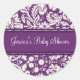 Purple Damask Baby Shower Favour Stickers